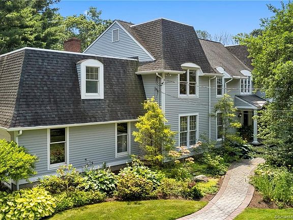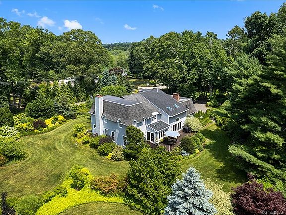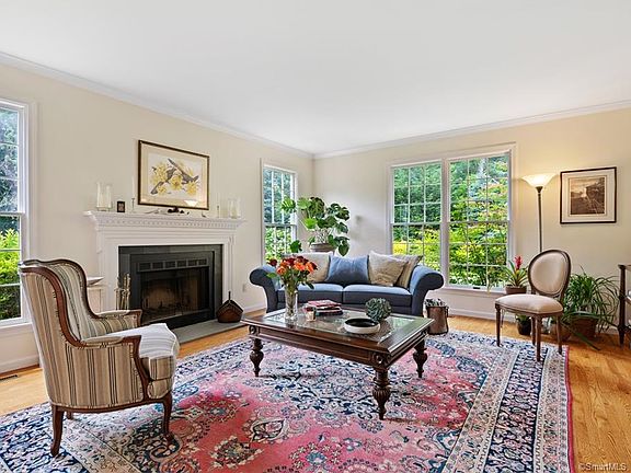 Captivating Pine Orchard colonial sitting on private oasis. Renowned California Landscape Architect C. Baasch created a year-round botanical garden in permanent dialogue with every room. The new portico opens into a 2-story foyer with an open staircase. Step down into the inviting Living Room. Ceilings change in height and seamlessly flow as you walk; all the while floor-to-ceiling windows draw your eyes back out to nature. A central kitchen with marble counters and backsplash, tasteful cabinetry, vaulted ceiling, skylights, eat-in space, and window wall. Pass through to the spacious formal dining room or to the family room with its 30' ceilings, 2nd fireplace, ample French Door access to the Mahogany deck and backyard, or to the oversized 2-car garage. A newly remodeled bath, a guest bedroom (convertible to in-law), and a private study with built-ins complete the main level. The second floor comprises a master bedroom suite with dual walk-in closets. The third bedroom w/ en suite bath, 2 more bedrooms, a bath, and a 27x22 rec room w/ easy access private laundry. The balcony connects the floor and overlooks the family room and yard below. Other details include a new propane generator, irrigation system, multi-zoned heating, and cooling. This private sanctuary is a short walk to Assoc. beach, hiking trails to Stony Creek,