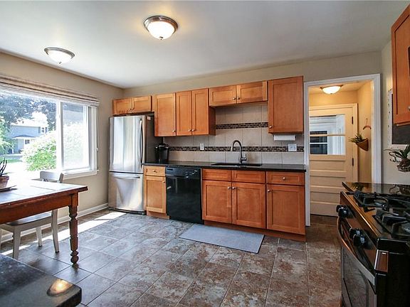 Don't miss out on this adorable ranch in the North Winton Village Neighborhood on a quiet cul de sac street! The fully remodeled eat-in kitchen has an open layout into the living room and boasts stainless steel appliances, granite counters, tile flooring and backsplash, and a breakfast bar. The inviting living room has refinished hardwood floors, a wood-burning fireplace, and lots of natural light. Each of the three bedrooms have gleaming hardwood floors and plenty of closet space. The bathroom has been fully updated and the home has been painted throughout with warm neutral colors, and the large rear patio and breezeway are great for summer entertaining! Maintenance free vinyl siding, thermopane replacement windows, central air AC, a large backyard and East Irondequoit schools...this one won't last!