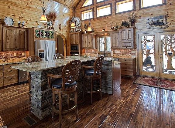 Stunning "Top of the World" Long Range Views & High Quality Rustic Craftsmanship come together in this Mountain Top Custom getaway w/ private gated entrance. Features 1 acre parcel bordering unspoiled NC Game lands, 4100+ Sq, 3 bedrooms +, 4.5 bathrooms, guest quarters, wood & stone interior accents, cathedral ceilings, open floor plan, 2 stone fireplaces, gourmet custom kitchen, luxurious master suite, 2nd master, fitness/rec room, media room, generator, detached garage/workshop & much more.