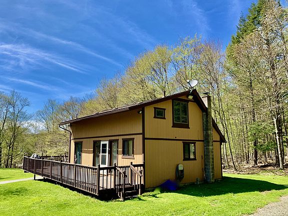 COMPLETELY PRIVATE, 2 BED, 2 BATH HOME ON 6 ACRES WITH 4 CAR GARAGE IN PLEASANT MOUNT! Take a closer look at this home featuring cathedral tongue and grove ceiling, spacious living room, nice kitchen, 2 bedrooms and 2 full baths! Wrap around deck perfect for entertaining guests or simply enjoying the quiet setting! 4 car detached garage for all your extra toys! Excellent location, minutes to state game lands, 20 minutes to downtown Honesdale for shopping, and close to Rails to Trails for year round recreation! Don't miss it!