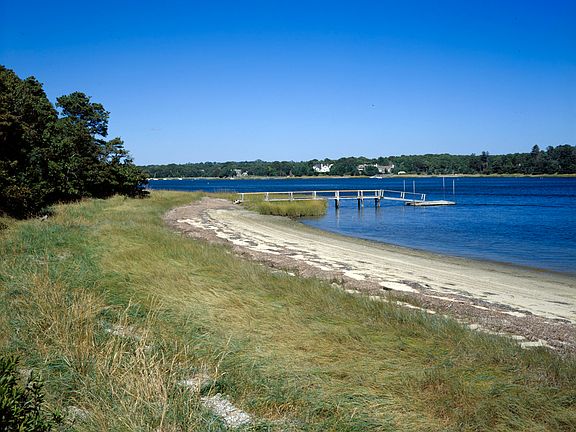 Viking Point is one of the most extraordinary properties in Orleans. Located at the end of a private road, the elevated site of seven acres offers magnificent panoramic views from the Namequoit River to Little Pleasant Bay and beyond. The main house and two guest houses provide room for an extended family in seven bedrooms, six full and one half baths, as well as three fireplaces. There are 985 feet of frontage on Little Pleasant Bay, including a sandy beach, pier with a float, and a boat house. There is also a tennis court and tennis house with half-bath.