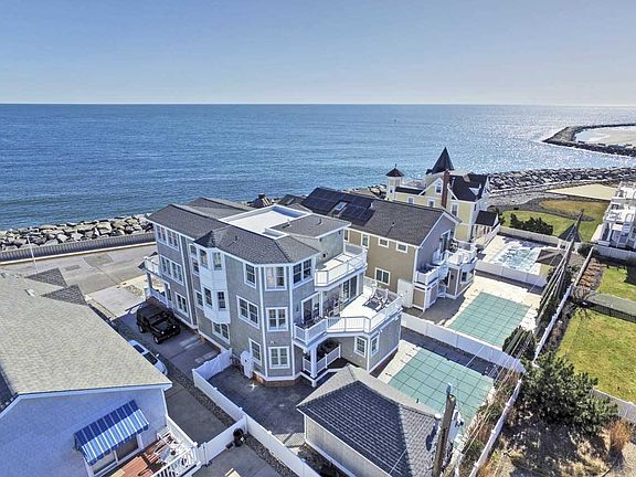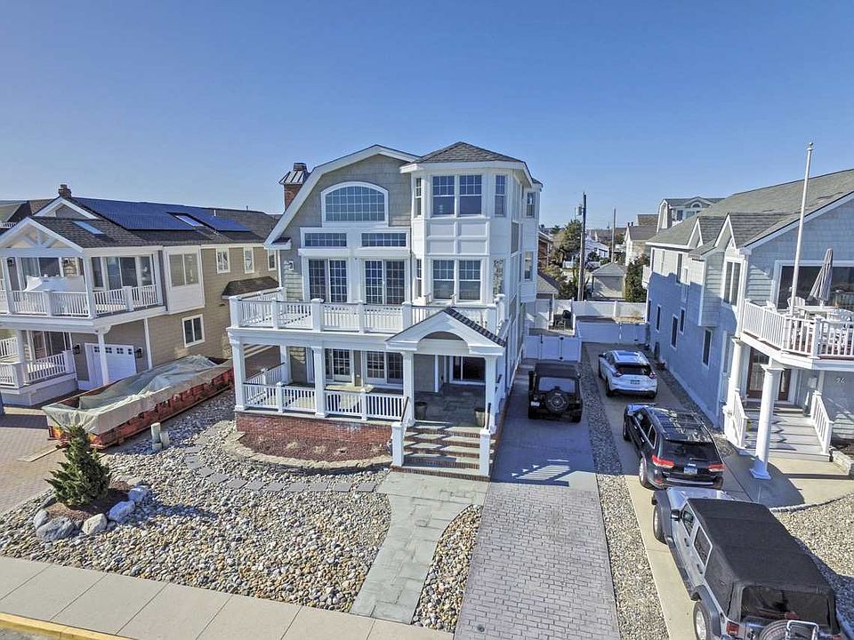 Jaw dropping, sensational ocean views all the way to Atlantic City. Beach access just around the corner without crossing any streets. Brandywine Developers custom built this 3 story very special upside down style home, offering 5 or 6 bedrooms and four beautiful, designer tile baths. The bluestone covered porch entry with mahogany door invites you into a sunfilled foyer, first floor oceanfront family room with wet bar, three bedrooms, one ensuite and one hall bath and a functional laundry room with outside exit. Enjoy days by the heated in ground swimming pool with cabana, roll down shutter and automated sun shade. A beautiful custom cherry staircase leads to a fabulous vaulted, oceanfront, second floor great room with Brazilian walnut floors, wood planked ceiling, gorgeous fireplace, a wall of glass and simply astounding ocean views. The chef's kitchen has fabulous custom cabinets, large center island with 2 stage stone and wood tops, ultra high end appliances, beautiful tile backsplash, and a very spacious dining area, separate from the main living area. The second floor has a sunlit, second family room or sixth bedroom with custom tiled floors, another large guest bedroom, beautiful hall bath and easy access to a spacious sundeck with stair to the pool. The third floor has a balcony with an extraordinary ocean view, large master bedroom, sumptuous master bath with custom cabinets, twin bowl, fabulous shower, and soaking tub. A cozy den, office, or exercise area sits just off the master with direct access to a private deck with wonderful ocean views. The master has a second, private laundry area. The special features include great deck space, custom tile work throughout, custom millwork, high end plumbing fixtures, beautiful natural slate floors, 3 zone gas FHA heat and central air, surround sound throughout first and second floor, beautiful 5 panel doors and much more. Home is easy to show and is offered unfurnished.