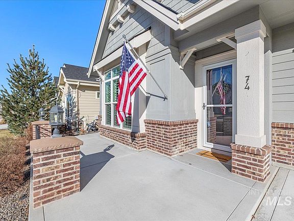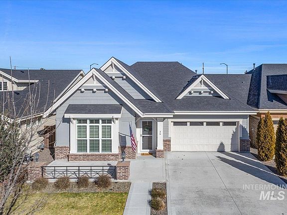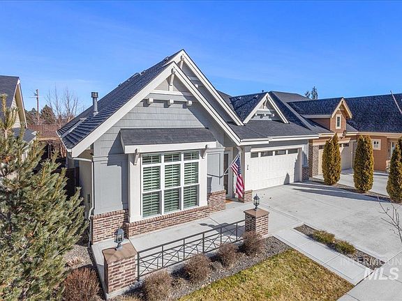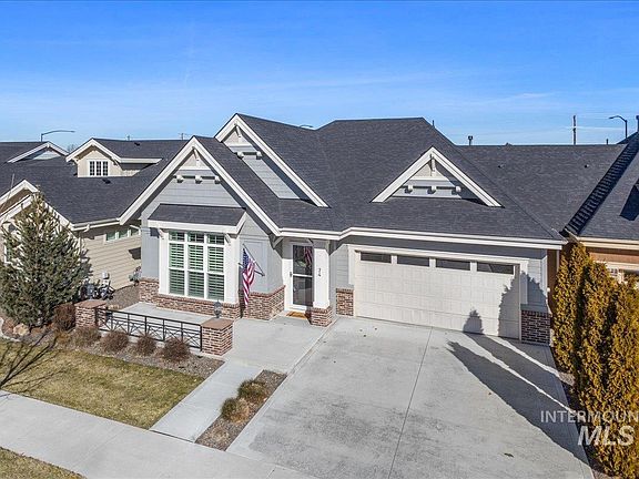 Wrap yourself in Luxury & Warmth in this One-Owner Single Level Cottage residing in Meridian's Premier 55+ Gated Community, Cadence of Paramount. Welcome Home & be greeted by a huge living space with soaring 10' coffered ceilings, accented by dimmable lights at every turn. New carpet & gorgeous hardwood welcomes you throughout your tour of this Beauties Large Windows fully dressed in Plantation Shutters, Bright Chef's kitchen with Island seating, Gas cooktop, Built in Microwave & Oven, Walk-In Pantry, smart floor plan with laundry room adjoining the Huge Master Closet, to the newly remodeled Master Bathroom featuring a full Spa Shower continuing on through the large Master Ensuite. When you need a breath of fresh air, step out on a very private side patio or relax out back under the high covered back patio. Enjoy the gentle Cadence of living with low home maintenance with snow removal, yard/sprinkler maintenance provided & make friends with social activities Bocee Court, Clubhouse, Pool & Spas.
