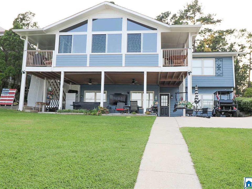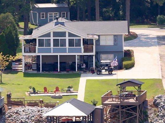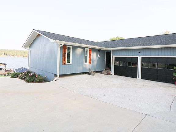 Best view on the lake! This main channel lake home has been completely remodeled to include HVAC, plumbing, fixtures, int/ext paint, hardwood flooring, 30 yr Architectural shingles and encompassed by a Ring Video/Audio Security. Kitchen has beautiful cabinets, breakfast bar, custom wood and copper finishes, black stainless appliances, two pantries and under cabinet lighting. Sunroom has new Thermo Pane slide windows, stunning lake view and rock gas fireplace. Main level Master has amazing water view. On suite bath features relaxing rain showerhead. Downstairs are 2 bedrooms, full bath and large laundry. Covered patio includes hot tub, TV and lounging area. Enjoy cool Fall evenings near the water at the patio fire pit or on the new dock that includes new boat lift. Home comes with additional lot across the street and 12x20 lofted storage building. Great Island/Golf Cart Community! Must see to appreciate!!