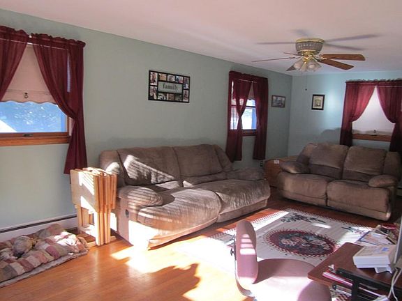Charming 6 room 1.5 bath Cape on dead end street features kitchen with sun garden window/formal dining room/front to back living room with bay window/3 bedrooms up/finished room in basement/level lot with stone walls