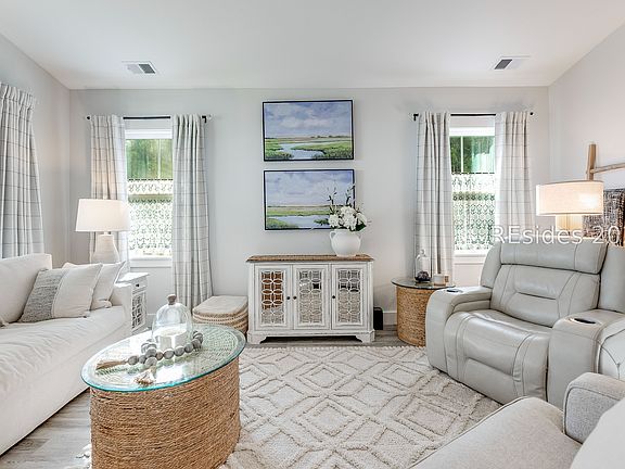 Thinking about buying new construction? Before you grab that shiny brochure, just remember: you'll also be buying your own window sills (yes... window sills), a vent so your hamburger grease actually leaves the house, ceiling fans, a refrigerator that isn't from the appliance graveyard (plus the extended warranty), washer, dryer, upgraded dishwasher, under-cabinet lighting, trim upgrades, and-if you're really lucky-PAYING EXTRA for a corner lot. Surprise! OR... you could buy this home, where all of those things are already done, installed, upgraded, and gorgeous and the home looks like a model. Your wallet can finally unclench. In addition, you'll find craftsman baseboards and windowsills, cottage-style trim, beadboard accents, wainscoting, and statement lighting throughout. The kitchen is a focal point, exuding luxury with quartz countertops, 42" cabinets, under-cabinet lighting, custom backsplash, and premium hardware. Wake up to serene sunrise views over the lagoon from your front porch, then stroll the neighborhood's sidewalks winding past peaceful lagoons and majestic Live Oaks. River Oaks sits quietly at the end of a street that meets the scenic Okatie River, offering Beaufort County living with access to Bluffton Schools. Here, small neighborhood charm meets the best of Lowcountry convenience.