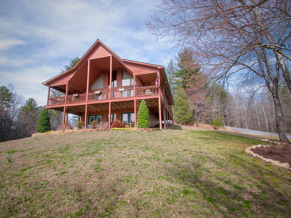 Lovely Chalet in beautiful Brasstown Area! This well maintained home boasts a wrap around porch, partially screened in; 2 car detached garage; & a storage building. The gentle rolling yard is a deer haven, and birds chirp brightly from the trees. The kitchen has beautiful granite counter tops, and a new kitchen sink! Bathrooms have new barn wood style vinyl plank flooring. Living room has t&g ceilings, and a gas fireplace for cozy nights in. The master loft suite is enclosed for privacy w/French doors and multiple windows. Basement is fully finished, with an additional room that is currently used as a third sleeping quarter for guests! Partially furnished. It's time to make your move!