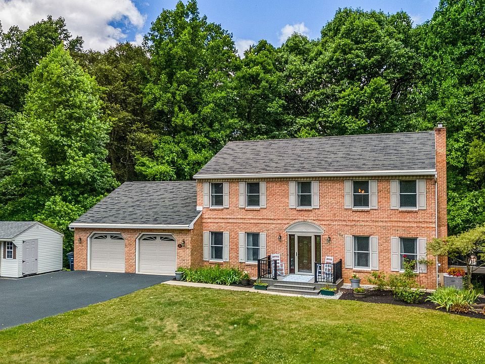 Welcome to this stunning colonial home located in the peaceful cul-de-sac of Woodland Manor. This charming residence is designed to offer both comfort and style, making it the perfect place to call home. The front porch, updated in summer 2022 with a TimberTech composite deck, provides a lovely spot to enjoy your morning coffee or watch the sunset. The large 30x42 rear deck , also made from composite material, was updated in 2021 and offers a wonderful space for outdoor entertaining. As you enter, you'll be greeted by the warm and inviting living room, featuring a cozy brick fireplace, ideal for relaxing evenings. Step inside to discover the elegant dining room, adorned with crown molding that adds a touch of sophistication to your dinner gatherings. The kitchen is a chef's dream, boasting granite countertops, an Indonesia backsplash, and sleek black stainless appliances. The home features four spacious bedrooms and 2.5 baths, providing ample space for family and guests. The front and back doors, along with the basement door, were all replaced in 2021, ensuring added security and energy efficiency. The basement is mostly finished with drywall and tile flooring, which would add approximately another 1,000 sq/ft of living space. A 12x24 shed offers additional storage for your outdoor equipment and tools. Don't miss the opportunity to make this beautiful colonial home yours. Schedule a showing today and experience the perfect blend of comfort, style, and functionality that Woodland Manor has to offer!