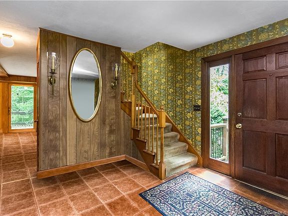 This is a special and unique property that has lots of potential. The house sits nicely back on a quiet road and surrounded by nature making it very private. Walk into the entryway from the front door and to the left is a large family room with a fireplace and built-ins. A newer over-sized glass slider takes you out to a quaint deck on the side of the house. Straight ahead is the kitchen that also leads to an addition that was used as a utility/laundry/mud room. Lots of possibilities for this space once cleaned up. On the other side of the first floor is a combination dining room/living room. A matching newer glass slider onto a larger deck that is great for outdoor entertaining. There is a half bath on the main floor. Upstairs are 3 bedrooms and a full bath. Small balconies on each side of the second floor for symmetry, cross ventilation and natural light. Many features of the home are original, but good bones are there for the right buyer to make 21st century updates and put their own touches into it. There is a detached 2-car garage and a large driveway. This is an estate sale to be sold as-is. Motivated seller. Bring your ideas and make an offer!