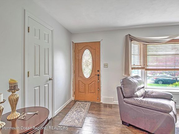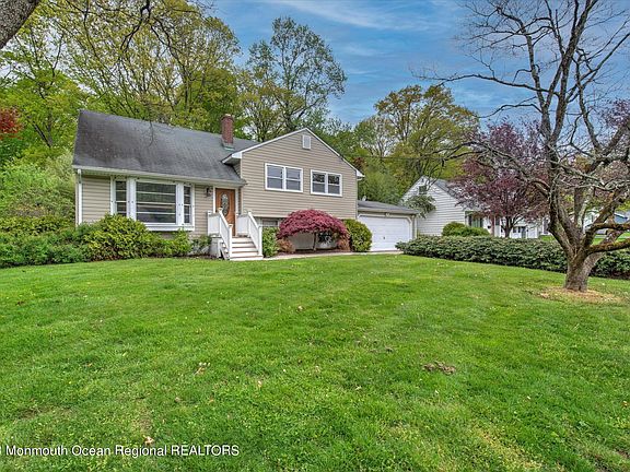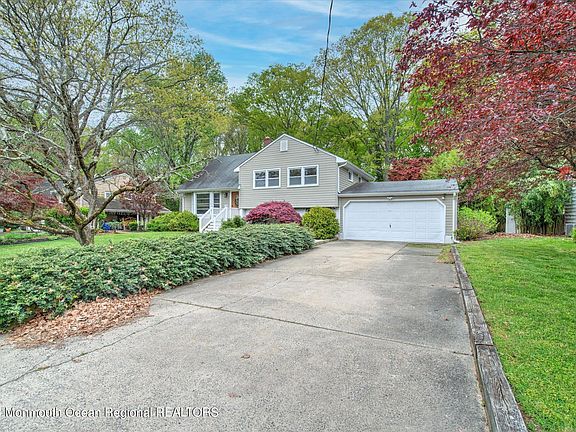 Welcome to this charming and well maintained 4 bedroom, 1 1/2 bathroom split level home located in desirable River Plaza. This home features 1 car garage, wood floor throughout, spacious living room, eat-in kitchen with stainless steel appliances and sliding glass door leading to private backyard. Lower level includes laundry room, powder bathroom and family room; great for entertaining. Close to Red Bank, major highways, restaurants, shopping, the Jersey Shore beaches and so much more! Being sold as is.... This will not last!!
