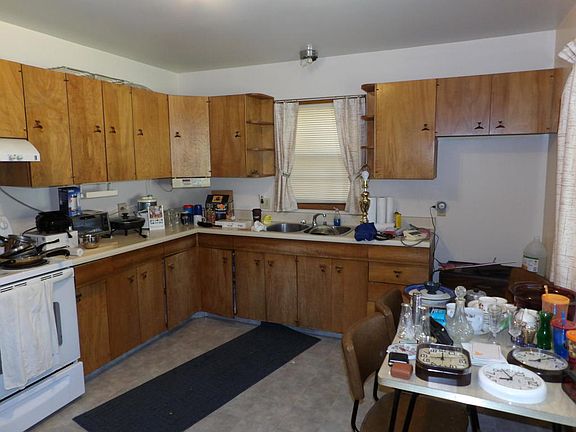 2 full lots with 2 garages, fenced in yard, central air, 3 bedrooms, 2 baths on main floor, no specials, and out of the flood plain! Home needs updating but has hardwood flooring underneath floor coverings. Basement is open with a Basement Solutions Finish.