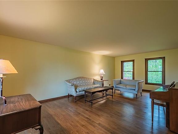 Remarkable Cape Cod home situated on ~1.35 acres in the heart of Oakmont. This sprawling floor plan is perfect for the entertainer. Welcome guests into your home through the grand foyer, which flows into the large living room. A formal dining room is perfectly situated between the living room and large eat-in kitchen. The den features handsome coffered ceilings, gas fireplace, wet bar, a bay window overlooking the wooded back yard, The first floor laundry and powder room connect the home's two car attached garage. First floor also provides a master bedroom with en suite bathroom. Upstairs has a second bedroom with private full bath, and two additional bedrooms with a shared bath separated into a dressing room with dual vanity and a full bath. The basement is partially finished with two large unfinished rooms that would make great game rooms. The finished section is a three room office space with its own entrance and half bath, which could also be converted to an in-law suite if needed.