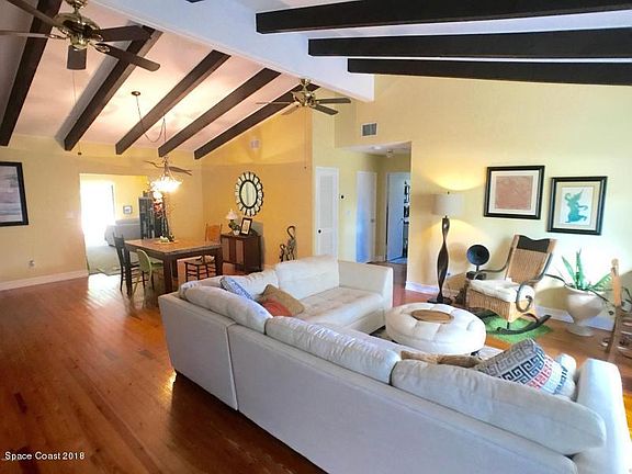 PARADISE AWAITS!!! Just a SHORT DRIVE TO THE BEACH, this 3 Bedroom, 2 Bath home has been well cared for and sits on a large .37 ACRE LOT on a private dead end street with NO FLOW THRU TRAFFIC. Landscape features many Fruit Trees & Exotic Plants, a LARGE FENCED IN YARD, Screened Porch overlooking Pool, a LARGE SCREENED PATIO, Front Patio WOOD DECK & PERGOLA, Driveway & Pool Deck ALL PAVERS, Storage Shed and Custom STORAGE CLOSETS in carport. Inside features an OPEN FLOOR PLAN, Cathedral Ceiling with Gorgeous WOOD BEAMS and HARDWOOD PINE FLOORS. Kitchen has been REMODELED with Tiled Floors, GRANITE COUNTER TOP, Wood Cabinets w/ Pantry and STAINLESS STEEL APPLIANCES. Family/Bonus Room off main living area overlooks pool. A+ Schools, Restaurants and Shopping all near by. THIS IS A MUST SEE!!