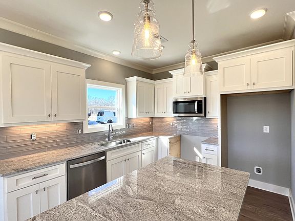 Exceptional Quality Construction by Eastland Construction Inc., Skylar floor plan, Living rm w/ Hardwood Floors & Tile fireplace, Island Kitchen with Custom Maple Cabinets, Tile Backsplash, Hardwood Floors, Microwave, and Dishwasher, Primary BR on Main Level with Large Bath w/ Separate Shower and Large Tub, Double Vanities, & Tile in Baths and Full Utility Rm, 21x20 Recreation Rm w/ pre-wired Surround Sound, Covered Back porch and Open Patio Area. Homes its on Amazing 1.37 Acre lot with Excellent view from back porch. $12,000 towards Closing Cost and/or Rate buy down w/ Preferred Lender Incentive.