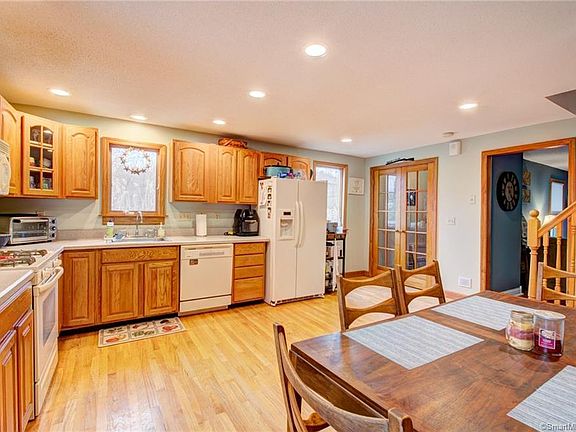 Charming Farmhouse Colonial set on a beautiful and open 2.5 acres of land! This home features surprisingly spacious rooms, beginning with a sun-filled, freshly painted living room with new flooring which leads into a huge eat-in kitchen, perfect for entertaining! Kitchen flows easily into a bright sunroom with peaceful views and access to the back deck. It's the perfect spot for a refreshing afternoon beverage in the summer or watching a quiet morning snowfall in the winter. 2nd floor features 2 incredibly spacious bedrooms including a master with a private full bath. There are so many ways to enjoy the outdoors with this property; host a cookout with backyard games, plant a garden, or sit around a fire under the evening stars. Plus a fenced outdoor space for pets! This property also features a detached 2-car garage and the front yard is lined with privacy shrubs. Located convenient to I-91 for easy commuting and numerous dining options. Just 10 minutes from Bradley International Airport. Tour this home today!