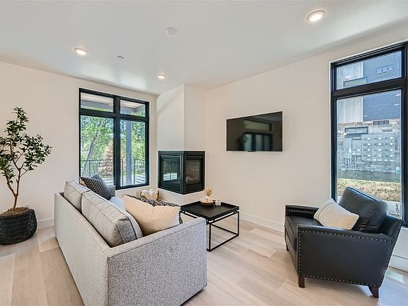 GROUND FLOOR RIVERFRONT CORNER UNIT WITH GARAGE and 2 additional designated parking spaces for a total of 3 parking spots for you and your guests!! Discover the allure of this fully furnished impeccably designed condo featuring an expansive open concept living space. Large picturesque windows bring in the views of the serene Blue River through the entirety of the great room. The breathtaking scenery is beyond what pictures can capture! Conveniently located on the ground level for easy access. Start your day with a peaceful cup of coffee or unwind at the end of the day on the spacious deck, perfectly positioned for watching the tranquil flow of the river. Enjoy direct access to the riverfront path, soon to be extended all the way to downtown. Short-term rentals are permitted, adding flexibility to your lifestyle. This condo has never been lived in or rented.