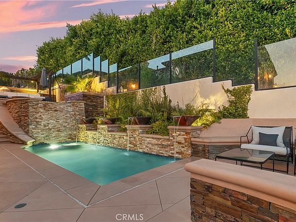 Perfectly situated high atop the rolling hills of Laguna Beach, 740 Bolsana Drive offers inspiring views from a variety of vantage points in the home including visions of Catalina Island, the coastline, sweeping views of the Pacific Ocean and awe-inspiring sunsets. A recent transformation is evident the moment you step inside. Beautifully reimagined w/new features, including new 8” maple wood flooring, new interior paint and baseboards throughout, new Restoration Hardware lighting, and new custom stairway railing. A chef’s delight, the newly renovated kitchen includes new quartz slab counters and backsplash, custom sink basins w/Kohler fixtures, redone cabinets, and new exquisite lighting fixtures. The luxurious primary suite features a fireplace and a private terrace offering enchanting views. The spa-like primary bath boasts a jetted tub, walk-in shower, dual vanities, and a large walk-in closet. Three additional bedrooms with remodeled baths, offer comfortable accommodations for family and guests, each opening to an outdoor living space with a commanding view. These bathrooms include new tile flooring, Taj Mahal marble counter tops and Valentino white marble tile walls, Kohler hardware and imported Zellige tile showers. There is an also a versatile first level den/office/gym which opens to the entry courtyard. The home theatre showcases a top-of-the-line D-ILA 3D projector paired w/an unmatched sound system. Luxurious black leather reclining seats provide the perfect combination of style and comfort for the ultimate movie going or gaming experience. The indoor-outdoor lifestyle seamlessly blurs the boundaries between the interior and exterior with living areas flowing out onto spacious newly tiled patios and decks, and welcoming courtyard with a calming fountain. The resort style feel is fulfilled with a sparkling pool, cascading waterfall, serene spa and complete outdoor kitchen, all with ocean views. The 3 car garage has new 5-layer epoxy flooring and more. Just minutes from downtown Laguna, you are convenient to the vibrant array of attractions and amenities this city has to offer including the culinary delights of world class restaurants, a renowned cultural scene featuring theaters showcasing captivating performances and abundant art galleries from local and international artists. Explore the eclectic boutiques and designer shops that line the streets, and of course world class beaches and resorts are all just moments from your doorstep.