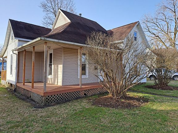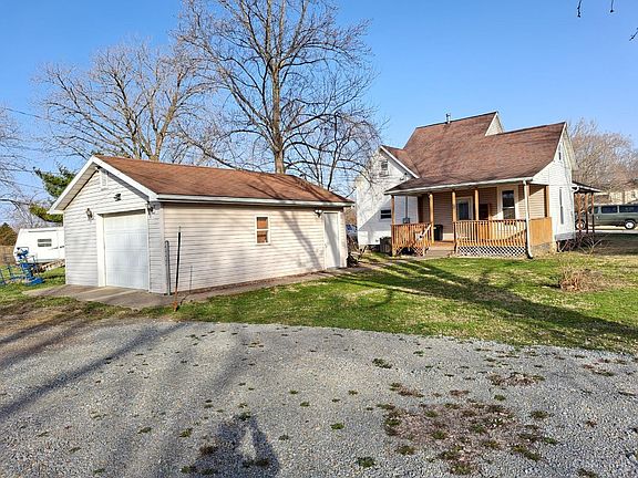 Very nice 2 story home, 4 bedrooms, 2 baths at the edge of town, replacement windows, F/A gas furnace, C/A, large eat in kitchen w/island & table, wood cabinets, pantry, built in microwave & dishwasher, stove, refrigerator, washer & dryer stay. large Lv Rm, w/hardwood floors, master bedroom w/en suite bath & hardwood floors, 24 x 20 detached garage w/concrete, electric, overhead door w/opener, large wrap around porch & 22 x 10 covered rear deck, ample parking in the rear. A Must See!!!