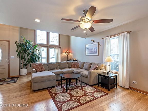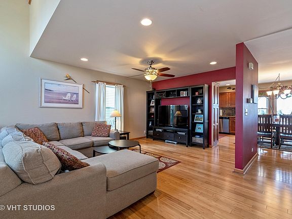 Don't miss out on this amazing home! Open concept living, vaulted ceiling, fireplace, bamboo hardwood floors on the main level, full finished basement and a first floor laundry room. Three bedrooms, 3 1/2 bath plus a loft that could be converted to a 4th bedroom very easily. The master offers a large en suite with a walk-in closet. New windows throughout 9/18. Smart garage door with battery backup. Large deck and brick patio with built-in fire pit great for entertaining. Fenced in back yard with a large field behind for added privacy. Close to everything I-88, the Outlet Mall, Randall Rd., the prairie path, parks, splash park, dog parks, park district all the amenities you need with the feel of small town living! HOME WARRANTY INCLUDED.