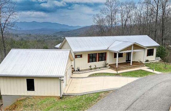 Modern Mountain Home w/ Privacy and a View of Brasstown Bald! It was Built w/ Green Materials and Energy Efficiency in Mind. The Kitchen has Thermador Appliances, Dual Oven, Soft-Close Cabinets, Quartz Countertops and the Perk of a 100-bottle Wine Refrigerator. The Main Floor Flows w/ Whitewashed Oak Floors and the Primary Bedroom has Black-Out Shades, Built-In Dresser and Shelves, Built-In Safe, and a Mini-Split to Control Heat/Air Separately. Other Features Include Accordion Glass Doors to the Deck, Haiku Fans, A Wine Cave, Bluetooth Speakers Inside and Out, Whole House Generator, Tankless Water Heater, and Acid-Washed Basement Floors. Outside, the Home is Board/Batton Cement Siding, Epi-Brazilian Wood Decks, Wired Railing, an Outdoor Shower, Propane Fire Pit and Built-in Grill at the Outdoor Kitchen with Paper Stone Countertops, a Custom Twin Bed Swing. A Two-Car Garage and Plenty of Parking Down the Cul-de-sac. And it Comes Furnished!