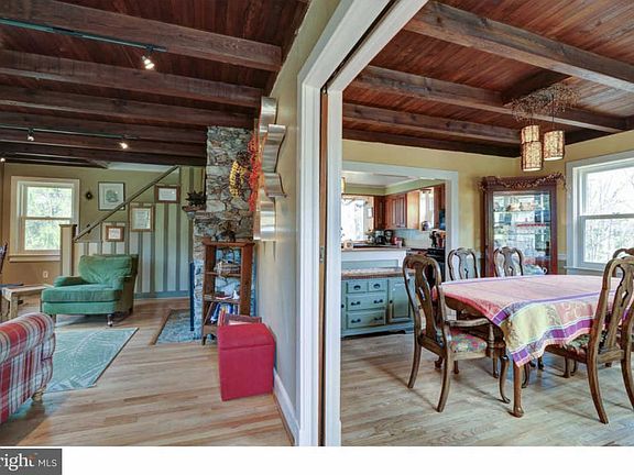 This charming home, built in 1917, was originally part of a small artists' community along the Delaware Canal. Being situated at the top of a hill, the home has a spectacular view of the canal and Delaware River and the rear yard backs to the canal where one can enjoy many recreational activities. The canal walking path is located on the opposite side, ensuring privacy for the homeowners. The home has many well-maintained original features including doors and door hardware, woodwork, working stone surround fireplace, and a built-in cabinet on the upper level. Upon stepping into the foyer one is greeted by original, decorative tile in the style of Mercer Tile. The main level of the home consists of the kitchen, living room with fireplace, dining room, half bath and sunroom. The second level has three bedrooms and full bath. Red Oak hardwood floors are found throughout the home and were refinished in 2014. The kitchen was renovated in 2016 with leathered granite countertops, refinished cherry cabinets, Samsung Energy Star-rated black stainless steel French door refrigerator, under-mount Kohler white cast-iron double-sink, and GE Microwave. The Amana gas cook-top range was installed in 2014. The bathrooms have updated fixtures. The partially finished basement is newly-renovated (Feb 2018) and includes recessed lighting, new ceiling, new drywall and new Stain-Master carpet in neutral tones. The large wood deck was built in 2016 and is accessible from the sunroom. A stone patio was also added. This area is perfect for entertaining and relaxing with an unobstructed view of the river and canal. Other features to be aware of include: Mitsubishi "Mr. Slim" split-type air conditioner/heating units installed throughout the home in 2016. This top-of-the-line system is energy efficient and cools/ heats the home quickly and quietly. In 2009, a new furnace and water heater were installed. The windows in the home are modern and all double hung windows tilt in for easy cleaning. Marvin wood windows provide excellent insulation and are in every room except for one bedroom which has Anderson vinyl windows. The roof was replaced in 2010 and there is a working Invisible Fence system around the entire perimeter of the house (front and back yards) for owners with a dog. The house is situated on a quaint street but is close to all major routes of transportation for easy commuting. Don't miss out on the opportunity to be the new owners of this lovingly cared for home!