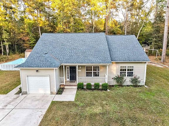 Tucked amongst the trees, this bright & airy home greets you w/a covered front porch, perfect for enjoying your morning coffee from! Once inside, the generous windows, skylights & a French door remind you that nature is all around you. The kitchen has gleaming granite countertops, beautiful cabinets, & a large, walk-in pantry. Ceiling fans throughout the home including the screened in sunroom. Laundry is kept out of sight in its own room & the bathrooms are modern & sleek with like-new vanities & fixtures. Venture outside & enjoy 2 acres of land, already equipped with pens & a chicken coop. Welcome to the peace & beauty of modern, country life!