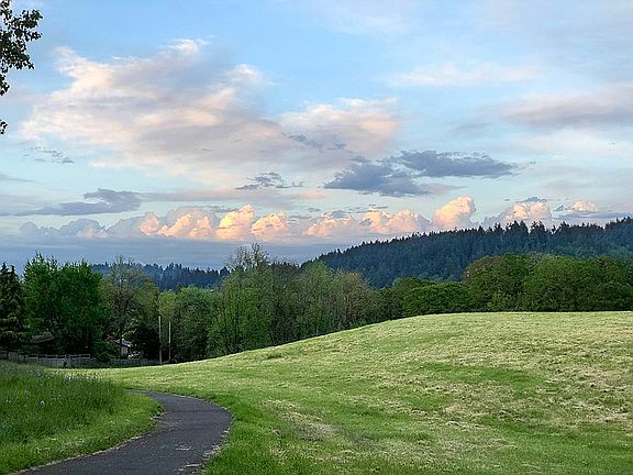 Salt Box style home built in 1946. Downstairs: Living room, dining room, kitchen, full bathroom, laundry room, two bedrooms. Upstairs: 2 bedrooms, large storage area, and small central living room. Space for upstairs bathroom future plans. Attached finished garage. House is original first house when town was a mile away. Now in middle of South Eugene. Park across the street. Schools and shopping walking distance. Cedar shingles. Painted original red color.