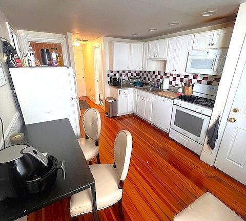 Great South Boston two bedroom with hardwood floors, big eat in kitchen, good size bedrooms, high ceilings, huge deck. $3200 first, last $500 security deposit and one month brokers fee no pets. Great East side location blocks to the beach.