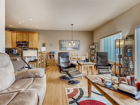 Highly desired 3 bedroom townhome over-looking Dillon and the Gore Range. Large, private master suite on upper level with a large walk-in shower and mountain views. Main level offers real wood floors; living & dining rooms, view-facing deck, kitchen, a half bath & entry to the garage. The lower level is a walk-out to the fenced-in yard, with two bedrooms, full bath and a TV room. Also has a very large, partially finished storage room with high ceilings. In-floor radiant heating, attached garage.