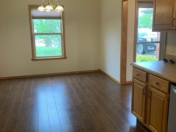 Country setting, 3 bedroom 2 bath home in Rogersville. This home is on the end of the cud-de-sac, backs up to open farm pasture, and split floor plan. Min. to hwy. 60 for easy commute to Springfield. This home features stainless steel, appliances, vaulted ceilngs, fireplace, laundry room, open kitchen, and more The roomy master features a oversized walk-in-closet, and bathroom. Home has new textured walls, and fresh paint. Please call for a showing 527-4157 Owner is a licensed Realtor Tenant responsible for yard and trash City of Rogersville Utilities for gas, water, and sewer Webster Electric 2-year lease