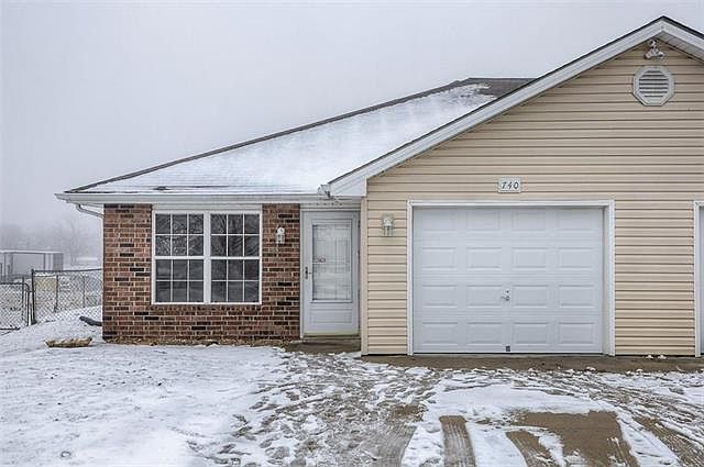 Very charming 1/2 duplex! This plan offers a very open and bright layout. Features great room open to dining area, nice kitchen with counter space and cabinets. Home offers three nice sized bedrooms. Maintenance free vinyl siding and brick. Thermal windows and patio for outdoor entertainment. Great location in Pleasant Hill, Missouri. 1 car garage large enough for extra storage.