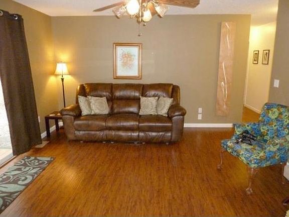 Fall in love with this neighborhood. Picture perfect 3 bed, 2 bath, all on one level ranch with 1400 finished sq. ft. This home features: Laminate wood flooring, large living room, dining room with chair-railing and French doors. Pretty white cabinets with brushed nickel handles, all Samsung stainless appliances (1 1/2 yr old), plus breakfast area, herbal window box, Butlers pantry, mounted TV in kitchen remains. Laundry located beside of kitchen and washer/dryer remains. Large master bedrooms with 2 walk -in closets and master bath. Both baths have been updated. Entertainment deck has lots of room and very tranquil. Enjoy watching all the birds, squirrels, and deer from the woods behind property. Enjoy the mountainous views. Great location, just minutes from interstate.