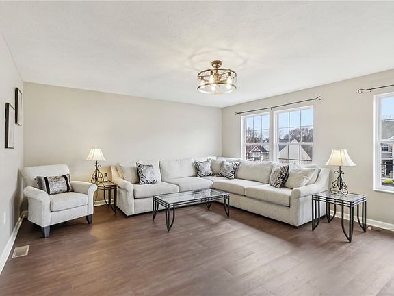 Welcome to this beautifully updated end-unit townhouse located in the sought-after for convenient Centennial Pointe community in Collier, PA! This 3-bedroom, 2.5-bathroom gem features unique architectural details, including elegant, curved walk-throughs and a spacious, light-filled formal living room perfect for entertaining. The kitchen boasts modern updates, cabinetry, appliances, and a functional layout ideal for both everyday living and hosting guests. Step outside, from the kitchen, to enjoy a generous backyard and side area—perfect for relaxing, gardening, or summer BBQs. Upstairs, you’ll find three comfortable bedrooms, including a spacious primary suite, and an attached 2-car garage offers added convenience. This move-in ready home combines style, space, and location—just minutes from Robinson Town Center and only 7 miles from downtown Pittsburgh. Don’t miss your chance to call this one home. A must-see!