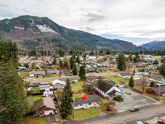 Surrounded by mountain views this 3 bed 2 bath rambler is the perfect starter home in the beautiful town of Darrington. Home has undergone a light refresh that will allow you to move in and make the final improvements to make it shine! Fresh interior paint, LVP flooring flows through-out, spacious primary bedroom with bathroom, and new trim and doors. Lots of natural light including skylights in the bathrooms. Deck off kitchen is perfect for BBQs. Home sits on a large lot with alley access. Oversized carport with storage shed. Come live and experience the small town vide at an affordable price in Darrington!