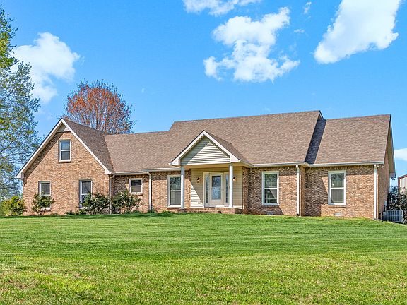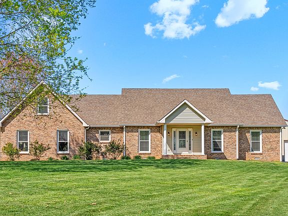 Welcome home to this gorgeous and spacious Cape Cod style home on 2 beautiful acres! Enter inside through decorative glass adorned front door with storm door. Hardwood flooring flows through the entry hallway, formal dining room and main living area. The large living room boasts a floor-to-ceiling brick fireplace with brick seating bench, and a half bath for guests nearby. Tile flooring extends through chef's kitchen with beautiful cabinetry. Kitchen features a large island with granite countertops, second prep sink, built-in cabinet area, double oven, pantry cabinets, and backsplash. Laundry room on main floor with cabinets for storage and easy access to second floor. Primary bedroom features tray ceiling, hardwood floors, and a large walk-in closet with upgraded shelving. Large primary bathroom suite features separate tub and shower and separate vanities. The office/extra room with hardwood floors and under-stairs storage/closet could be a fourth bedroom. Oversized second and third bedrooms are upstairs with a full bathroom joining both rooms. An enormous bonus room and rec room finish out the second floor with an extra wall mounted AC system to ensure the space stays comfortable. Relax in the Florida/sun room which is accessible from the living room and back deck area. Large shop with high ceiling has 2 garage doors, side entry door, and has electricity! The garden contains 12 blueberry bushes, 2 blackberry bushes and 2 red raspberry bushes. They are well established with so much fruit every year. The garden is fenced-in with a hinge gate. New paint throughout almost the entire interior. Home is perfectly located in a country setting away from the city, but still close enough to get to Sango/Clarksville and Fort Campbell in a timely manner.