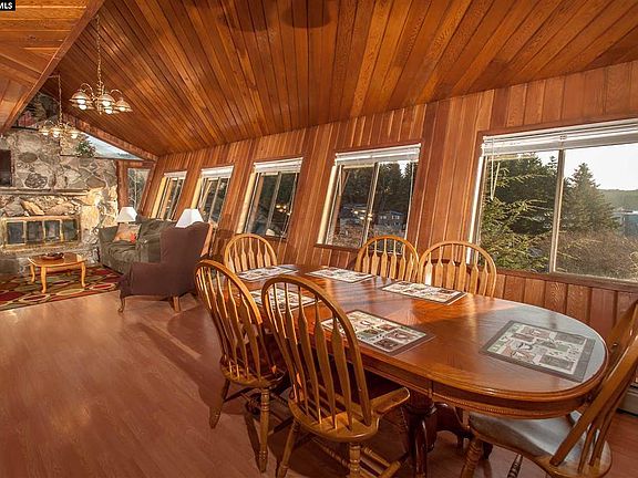 Excellent earnings history as an established vacation rental property or enjoy downtown living with all the benefits of being in the heart of the downtown corps. This home is a 3BR 2BA property with a 2BR 1BA rental unit below. Separate electric meters. Fantastic views of Deer Mtn and Ketchikan creek as well as Channel views. On site parking located adjacent to home w/an elevated parking deck for 2 vehicles. Built in Sauna in main unit. Interior finish has cedar siding from Herring Bay. Residence is partially sprinkled. Efficient floor plan with modern kitchen. Kitchen has ceramic counter tops. Laminate flooring in main unit w/carpeting in lower unit. Both units have a washer/dryer. Keep the property as a vacation rental; convert it to a long term duplex or live in the upper unit and rent out the lower unit - Buyer's choice.