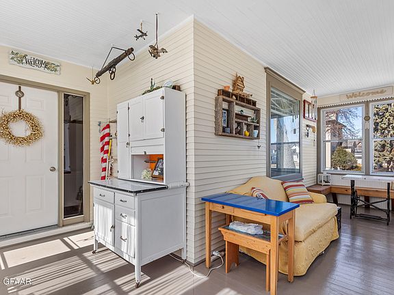 Enjoy the charm and character of a historic home with all the modern amenities. This fully updated home features a newly remodeled kitchen with new counters, tile backsplash, built-in pantry, new appliances, and eat-in peninsula. The main floor boasts a charming enclosed front porch, spacious living room, dedicated dining area, a bonus/flex room perfect for a home office, updated 1/2-bathroom, main floor laundry, and easy access to the covered rear deck. 3 bedrooms, a full bathroom complete with a claw foot tub, and bonus family room (or 4th bedroom) completes the 2nd level. Other features and updates include newer shingles, maintenance-free siding, gutters, updated double-hung windows, new furnace/AC & Bosch heat pump, heated over-sized attached garage, fenced yard, large double lot, mature landscaping, garden plot, apple tree, and 12x12 shed.