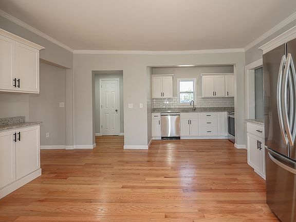 Welcome home to this newly renovated expanding Cape in an extremely desirable area of Manchester, NH. This property feels like new construction with brand new windows, new siding, new forced hot air heating system with central air conditioning, and also the new roof on the main house and the garage has a transferrable lifetime warranty. Expansive bright living room and sunroom are on the first floor. Brand new kitchen cabinets topped off with granite countertops and stainless steel appliances. Modern full bathroom with tiled shower walls conveniently located on the first floor and right next to the first floor laundry area. Additional brand new bathroom on the second floor with three large bedrooms with plenty of closet space. There is a fourth bedroom or bonus room also on the first floor that could be used as a bedroom, office, workout, playroom, or rec room. Plenty of storage potential in the unfinished basement. Oversized two car detached garage. A massive level and private back yard that has new fencing around it. Close to highways, schools, parks, restaurants, and much more. Come take a look! Open House Saturday 4/20/24 9 am to 12 pm and Sunday 4/21/24 11 am to 1 pm