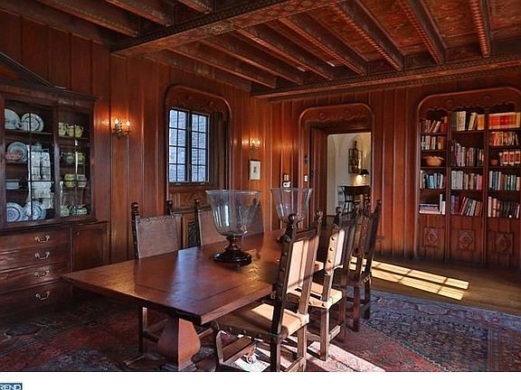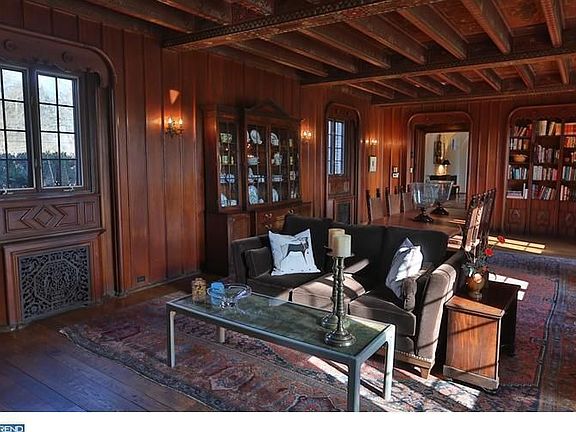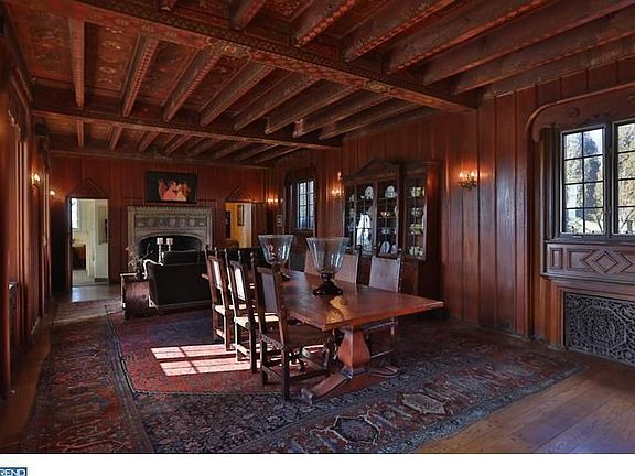 This historic Whitemarsh manor home, Balinor, offers the rich details of a bygone era along with a flexible floor plan desired by today's modern families. Spectacular stenciled exposed wood beams and intricate grill work, stunning unobstructed vistas, 5 impressive stone and marble fireplaces, and an updated kitchen all combine to make this home wonderful for both family living and larger-scale entertaining. The showstopper on the 1st fl. is the great room with rare artisanal details. In addition, there is a dining room, sunroom, den, and laundry room. On the 2nd fl. are three bedroom suites, each w/sitting room and bath. 2 more BRs, a full bath, and a fully floored attic, perfect for storage, are on the 3rd fl. There is a separate, private, 1BR apartment with kitchen, for in-laws/au pair over the 3-car garage. Swimming pool and pool house. Located on 1.5 acres, Balinor is on one of the most coveted private lanes in the area and looks over the historic Philadelphia Cricket Club's Flourtown golf course.