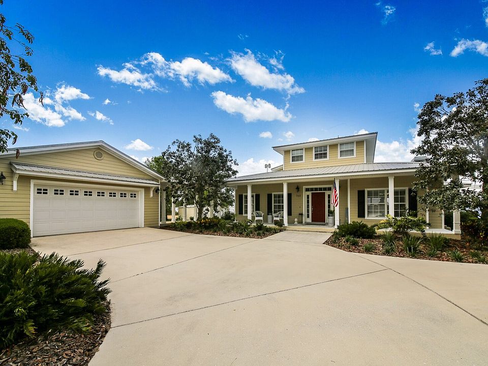 This custom built Florida Cottage style home on Little Crooked Lake features a metal roof, porches front & back, and a connecting detached garage. The downstairs offers a gracious entry hall with 1/2 bath, a large open living area with crown molding, solid state recessed lighting, wood burning fireplace, wall of windows with lake views, screened porch access and walk in storage under the stairs. The connecting open kitchen has granite counters, breakfast bar, tile backsplash, updated stainless appliances, center island, custom cabinets, closet pantry, pass through window to the patio and an eat-in area with garden views. The downstairs master suite features lake views, crown molding, walk-in tiled shower with glass surround, jetted tub, pedestal sinks, walk-in closet and connecting laundry room. Also downstairs is an additional bedroom used as an office/guest room. Upstairs is an oversized 2nd master suite with walk-in closet and large bath. This area could easily become an in-law suite or additional bedrooms offering an amazing view of North Crooked Lake & Bok Tower! The wraparound screened back porch, with access from living room, master, backyard, and patio provides ample space for relaxing, grilling and dining as well as nearly 180 degrees of water & nature visible from the porch & home. The 2 car detached garage offers built-in workbench, upgraded electrical and pull down stairs to overhead storage. This home is surrounded by a low maintenance, professionally landscaped yard offering privacy while maximizing access & lake views. A paver walkway and patio offer outdoor living ease and a 100 foot dock provides boat access. The property includes in ground irrigation and a whole house water filtration system. Located on the southern basin of Crooked Lake, a designated Top 10 Most Outstanding Florida Lakes. Enjoy waterskiing, boating, jet skiing, paddle sports, & fishing all within an hour or so of Orlando and Tampa. Buyers agents are welcome!