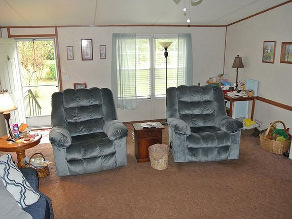 Triple wide mobile home on 1.43 acres. Home has been well kept with newer metal roof and HVAC system. Nice floor plan with large kitchen, living area and large master suite. Lots of outdoor space for entertaining with an attached back deck and detached gazebo. Storage building and pole barn. Large field behind home for garden or to possibly make into a pasture. Lots of possibilities.