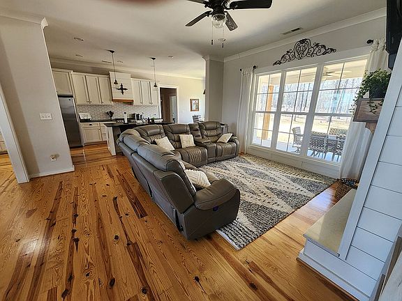 Breathtaking views of the lake and mountains from your covered front porch or take a stroll in your private wooded back yard with a walking path. This is a highly sought after pristine neighborhood with its own private boat ramp in the neighborhood park area. Enter your home thru the wonderful tall double door entry way into the open concept living room with 10 foot ceilings w/gas fireplace and dining area overlooking the lake. The main areas have beautiful pine wood floors and adjustable overhead LED lighting. The kitchen includes stainless steel appliances, bar seating for 2 on the island with farm style sink, a 6 burner gas stove and to the side a coffee station area and butler pantry for all your entertaining needs. This kitchen also features Shaker style cabinets and soft close drawers. The breakfast nook area has quiet views of the fenced back yard and access to the back covered porch area. This wonderful 4 BR/3 Full bath home for your family includes 2 Master suites. The first large master suite has a walk-in closet; Large 2 person shower area with dual shower heads, linen closet, toilet closet and dual sinks with plenty of cabinet and drawer space. The 2nd master suite or office bonus room has a tub/shower combo and beautiful views of the lake. 2nd and 3rd bedrooms have a tub/shower dual sink area between them and 2 hall closets for more storage. There also is the walk-in laundry room with shelving and a mud room area to the garage. The large garage area for 2 vehicles has enough space to store extras and includes an overhead storage area. The pristinely landscaped yard has an active sprinkler system to take care of those warm days for the lawn or the kids to run thru them to cool off. Assumable VA Loan with qualification Realtor commission open for concession Contact Lori @ 205-873-9916
