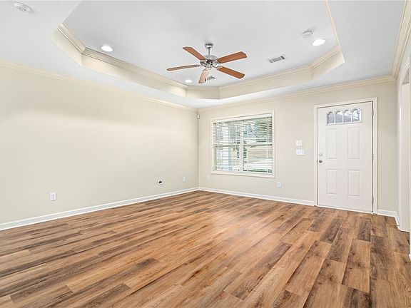 Great location for this charming 3 bedroom, 2 full bath home in Claire Downs. Close proximity to downtown Auburn and AU campus. Open kitchen with stainless appliances and granite countertops. ALL NEW paint, LVP, carpet, and deck. All appliances remain including refrigerator and washer/dryer. Fresh, new landscaping. LVP throughout all main living area. Open kitchen with stainless appliances and granite countertops. 2" wood blinds throughout. NEW deck off rear of home, perfect for outdoor living and entertaining. 2 car attached carport. Outdoor storage. Security system and best of all.... NO HOA dues!