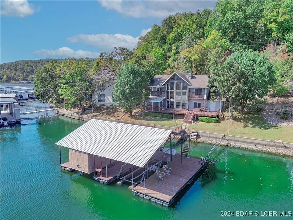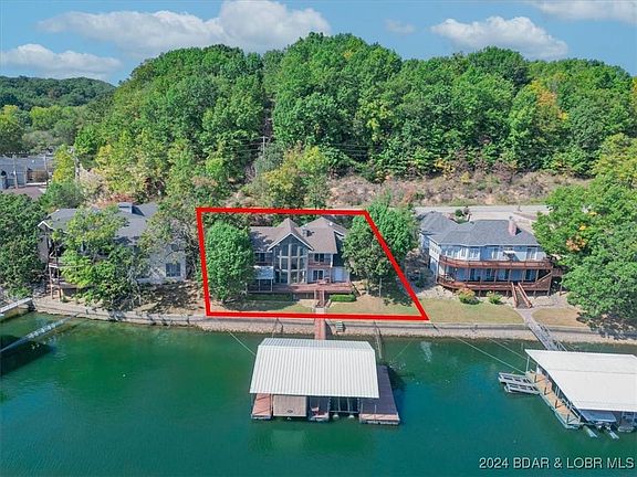 Incredible lakefront home on the 35 mile marker of Lake of the Ozarks! Located in a cove with main channel view, this place has tons of potential. Enjoy it as a full-time residence, personal getaway, or an investment property with nightly rentals! Excellent bones and well-maintained, it could easily be updated or enjoyed how it is! Gorgeous vaulted ceilings with tons of natural light facing due east. Two bedrooms and full bath are on the main level with a great family room space and the lower level features the kitchen with granite counters, stone fireplace, wood beams, ensuite with walk-in-closet, and more! Only a few steps to the lakeside, flat yard and year round water with over 20ft deep under the dock! Perfect for fishing and swimming. Slip include boat lifts (no info on sizing). Just across the channel from Captain Ron???s and the Shootout location, plus very close to The Cave, Bear Bottoms and numerous other places! High speed, fiber optic internet available, paved roads to the front door, parking for multiple vehicles, and only 2 hours to KC / 2.5 to STL. 2024-10-16