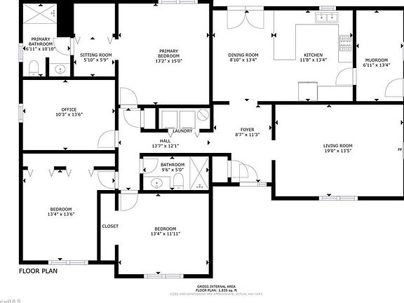 - Total interior livable area: 1,835 sqft