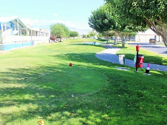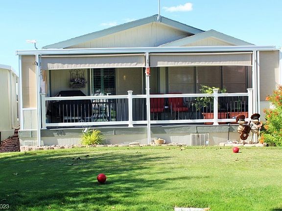 TRULY ONE OF A KIND HOME in Gorgeous 55+ gated Desert Greens Community with Resort style living in the heart of Pahrump. Not only is the LOT INCLUDED, there is NO LAND LEASE, and the home's additional amenities are SUPERB. GOLF COURSE FRONTAGE with views of the fairways, Mountains and Pond. Upgrades include Kitchen granite, Plantation shutters thruout, fresh paint, new toilets, upgraded flooring thruout. ALSO Unique to this home is the approx 200 SF Oversized Workshop/ Storage with A/C. Kitchen/Dining/Living area open to each other with slider out to the Upgraded covered Trex-decking, Custom Screening and spectacular Golf Course views. Unique also is a separate room for more storage/pantry space, Laundry & Office. So much to brag about, this is a must see for those who desire the best in Desert Greens. Enjoy the Beautiful Clubhouse & many activities including the gorgeous Golf Course, Pool, Spa & RV Parking and friendly neighbors. Please call ahead for viewing.