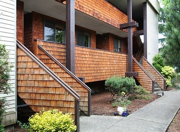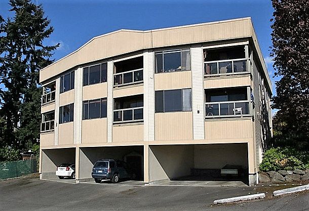 Top floor, 2 bed/1 bath corner unit, located in small complex of just 6 units. Enjoy spectacular, sweeping views of Lake WA, Olympic Mtns & colorful sunsets. Great room concept w/large living & dining area. Granite counters & ceramic tile floor in kitchen. Updated bath, all new appliances, windows, hardwoods, plush carpet & fresh interior paint. Sliding door to covered view deck. Full size W/D in unit. Covered parking + storage. Just mins to lake front activities, The Landing, VMAC, Boeing & 405
