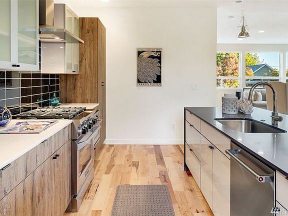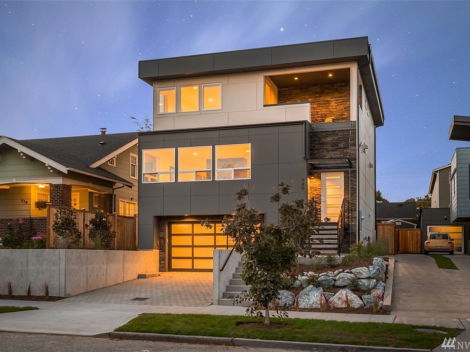 Basking in NW modern luxury, this is the ONLY place to call home. Massive covered back deck plumbed w/gas for bbq & firepit, high-end appliance suite, gorgeous wide-plank hickory floors, dual sided fireplace, master w/view deck, electric car port... you name it, they did it. This gem is in one of Seattle's most POPULAR neighborhoods. Steps to great restaurants, shops, cafes, Greenlake, an easy commute, & buses are a breeze! Too many things to list here, more info onsite. Come see for yourself!!!