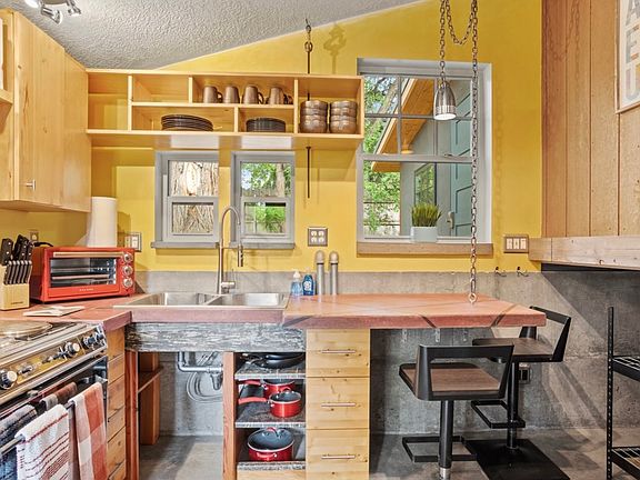 This beautiful & energy-efficient home lives large on its lovely tree-filled lot! Enter to vaulted ceilings & a spacious, flexible floor plan that gives this home an open, airy feel. Picturesque windows fill the rooms with natural light & enhance the beauty of the warm wood ceilings & beams. The living & dining area is cozy & creative with bamboo floors & a beautiful tile accent wall. Head to the fun & functional kitchen featuring open cabinets, concrete counters, & a convenient breakfast bar. A ductless HVAC system combined w/heated floors & a gorgeous enamel fireplace for chilly nights ensures you\'re always the perfect temp. Enjoy time around a fire with friends after a day at the nearby Whitewater Park or cycling on the Greenbelt. RV parking & a 16x8\' shed provides room for all your toys! This property is fully furnished ready for you to call home.