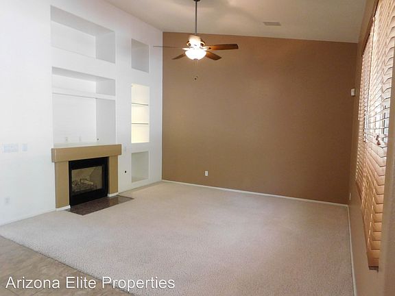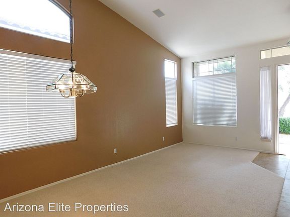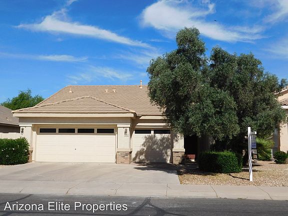 Gorgeous Former Fulton Model Home in Chandler! 3 bed 2 bath 3 car garage. This home sits on a quiet interior lot with no neighbors to the back and an immaculate curb appeal with stone veneer columns and mature landscaping. The home is well appointed with ceramic tile through walking and wet areas and vaulted ceilings. Large floorplan with living/dining room, perfect for formal dining and sitting room or to convert to a game room. Large eat in kitchen with island/breakfast bar, extended counter tops and stainless steel appliances (gas stub for range). Great room features gas fireplace with built in shelving. Large master bedroom with bay window, separate tub/shower, double sinks and walk in closet. Backyard has covered patio with extended decking,